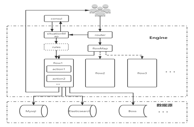 •Action:表示Flow中需要执行的操作,是有序的,是在程序中封装好的对数据源的小粒度操作