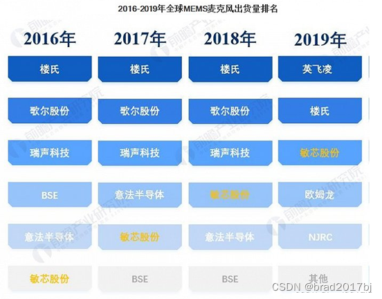 敏芯、歌尔、瑞声都是中国的公司,苹果、华为、OPPO高端耳机都会用到这几家的MEMS麦克风。
