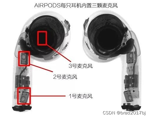 以上就是蓝牙耳机单向播音功能的工作原理介绍,现在的蓝牙耳机都是双向通信的,那就需要麦克风来采集声音了。例如苹果耳机的麦克风就有三个,1号麦克风用来采集声音信号,2号麦克风用来采集外部环境声用于降噪,3号麦克风用来采集人耳内部环境声用于降噪。