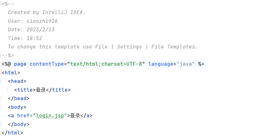 第四步:在index.jsp文件中写出一个超链接用于连接login.jsp文件