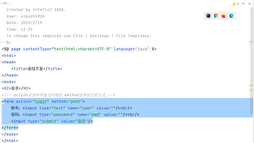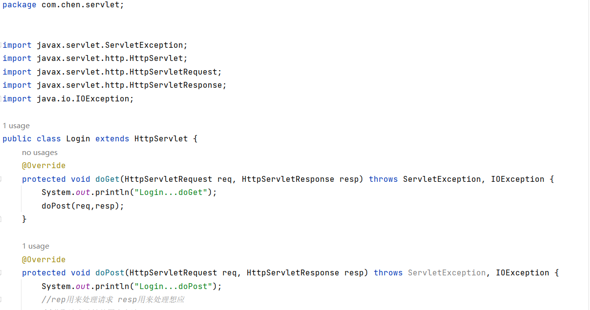 第二步:创建Login.java文件,继承HttpServlet类,在Login类中编写doGet(),doPost方法并在doGet()中调用doPost方法