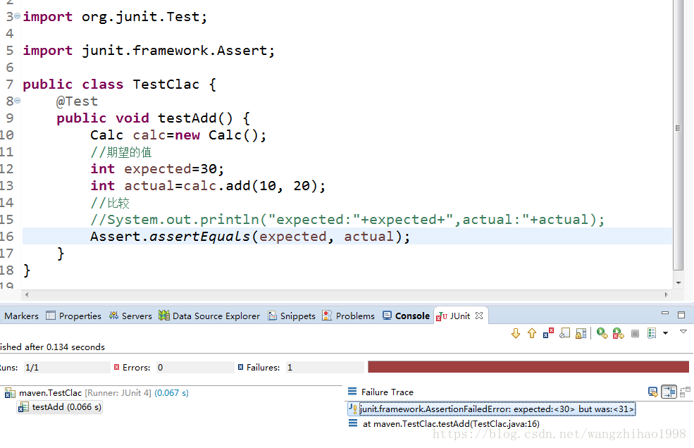 4.编写调用代码,期望值,实际值使用断言进行比较
