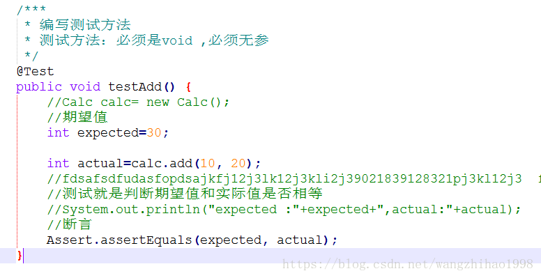 我们没学过Junit的时候如果需要测试方法只通过眼睛去看去比较,如果比较长的字符串好比如下: