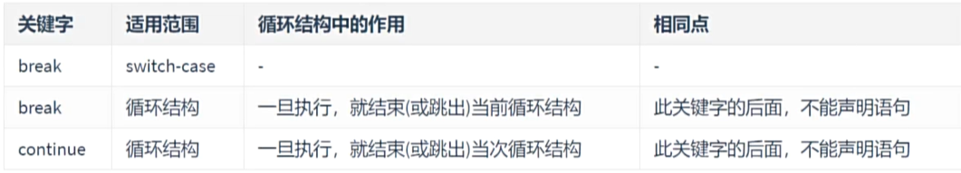 break和continue关键字: