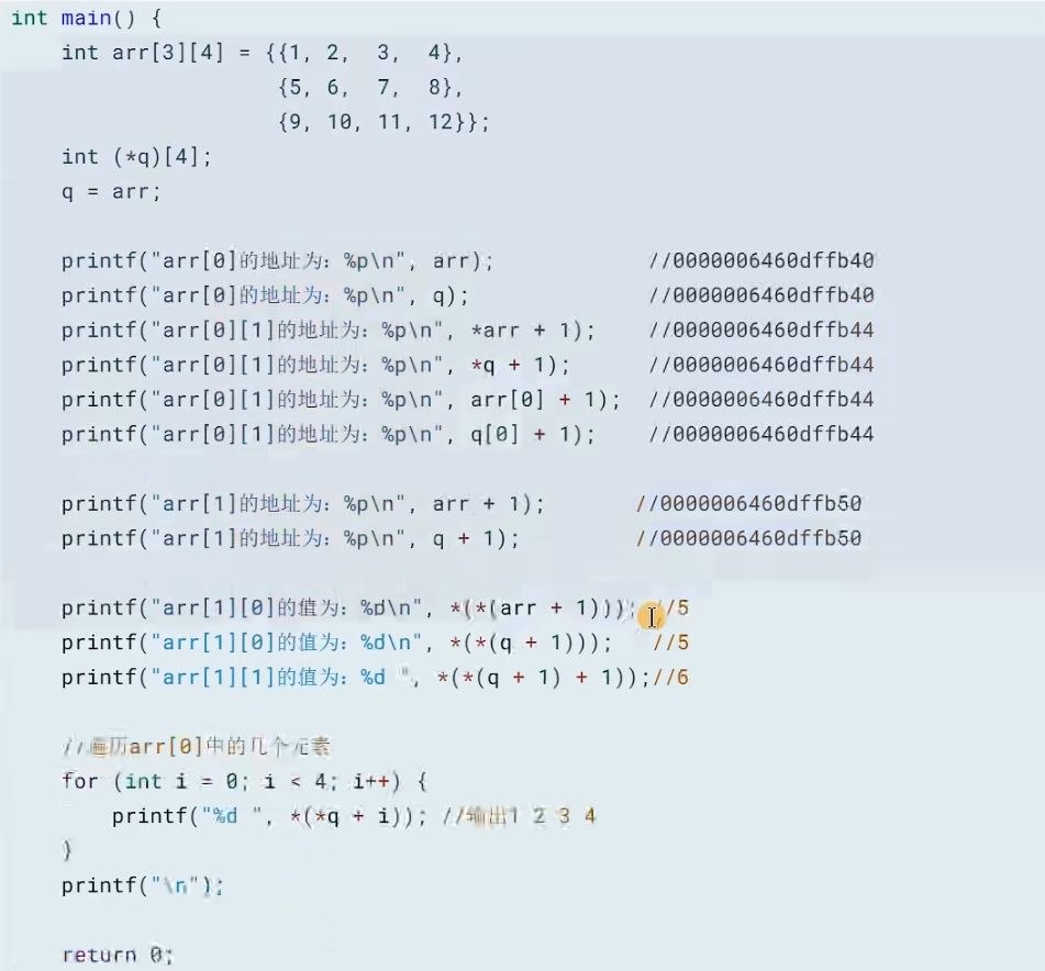 printf("%p\n",&arr[0][0]);//获取a[0][0]元素对应的地址