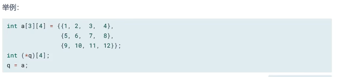 注意:此时定义的是一个指针变量,并非是一个指针数组。(*p必须放在括弧内,否则就成了定义指针数组)