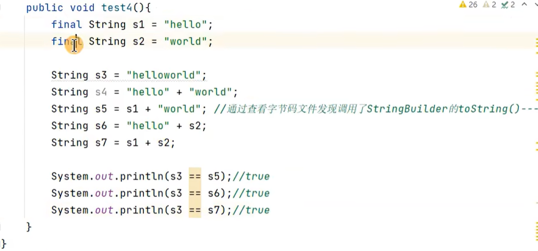 System.out.println(s1 == s2);//true
