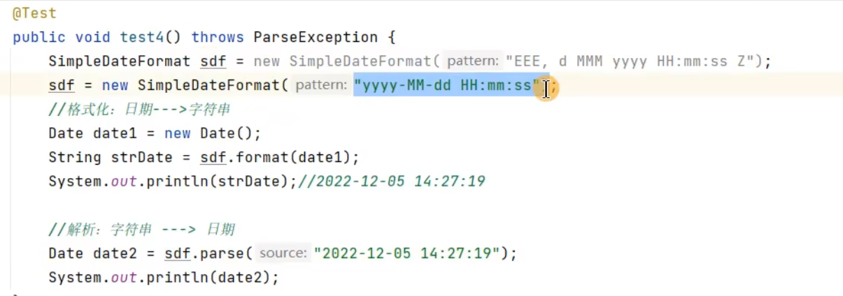 //解析:字符串-->日期,时间