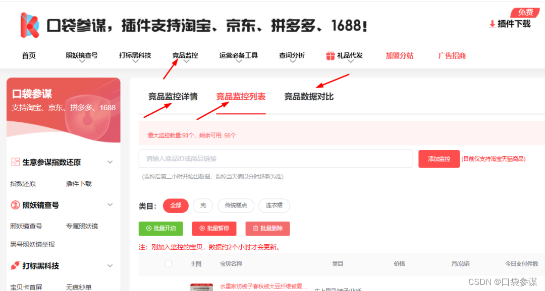 现在99.999%的商家,都在用的口袋参谋竞品监控: