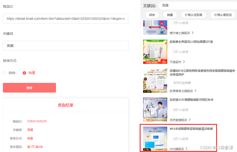 2、输入宝贝id以及宝贝关键词,选择综合或者销量,进行搜索