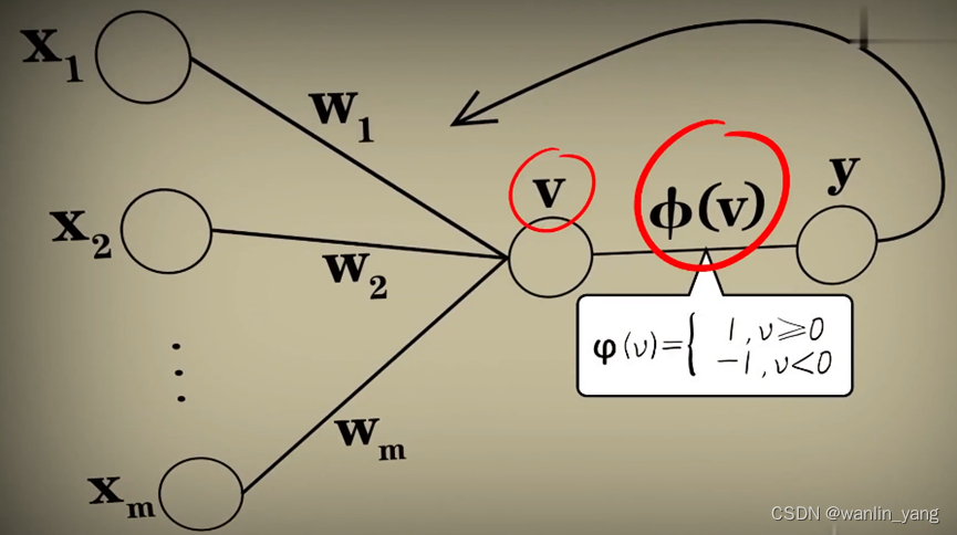其实我们一开始提到的Rosenblatt感知器中也有激活函数,当时为了不造成困扰,我们并没有提及Rosenblatt感知器把线性函数的计算结果放入一个类似的符号函数中进行分类,也就是说到此为止我们才算见到了完整的Rosenblatt感知器。