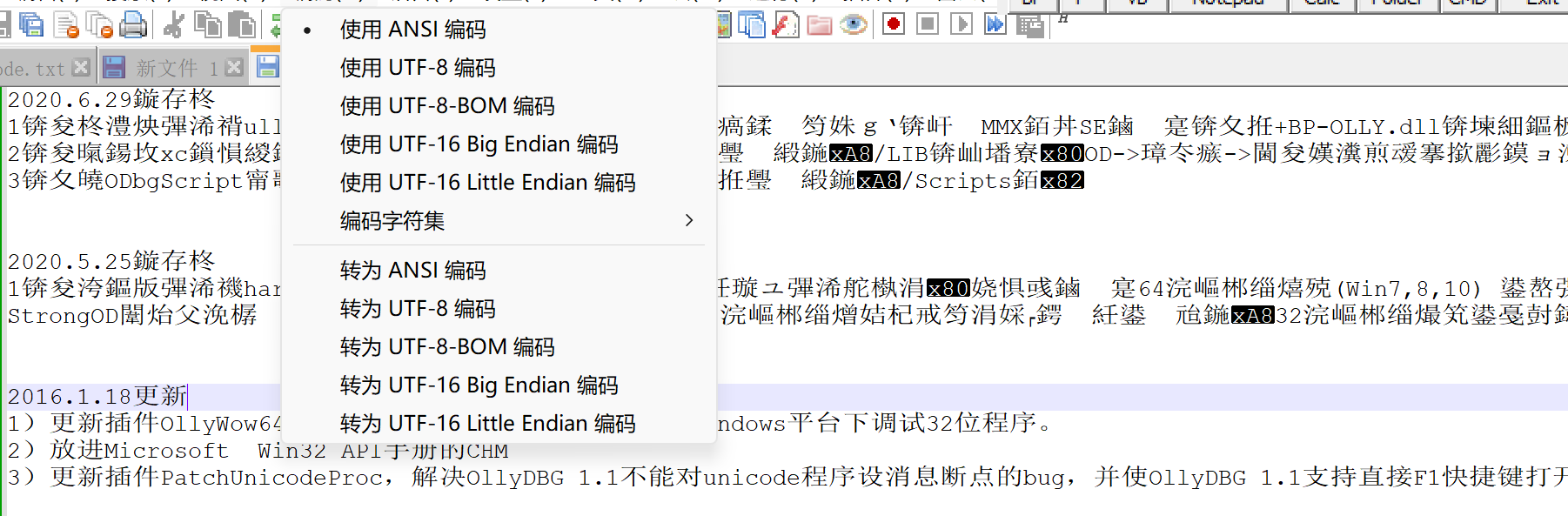 总结与回顾:乱码的问题我以前也遇到过,最初是PHP的乱码,然后C语言也遇到了乱码,虽然最后都解决了,但是没记录方法(其实就是情况1的问题),今天使用了OD又出现了这个问题,还真是困扰了我一会。特此写下,供诸君浏览,也是给自己浏览,下次遇到能有个解决指南吧。希望对大家有所帮助,彻底解决中文乱码的困扰。