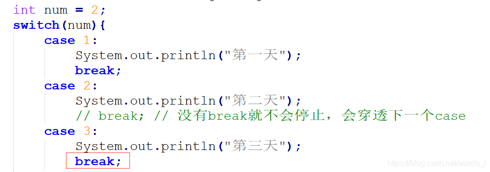 但注意,被执行的case里没有break的话,会穿透下一个case并执行。