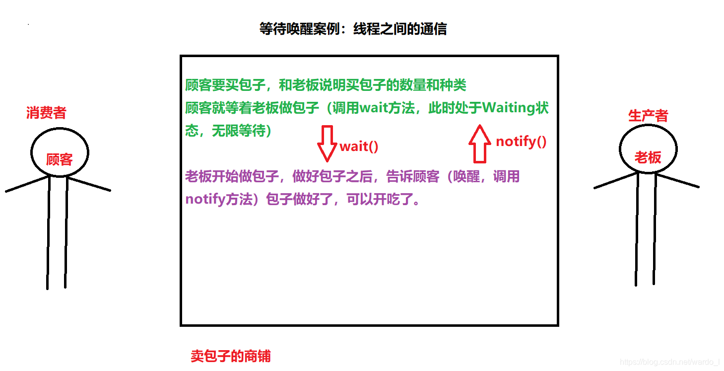 1.顾客和老板线程必须得使用同步代码块包裹起来,保证等待和唤醒只能有一个在执行