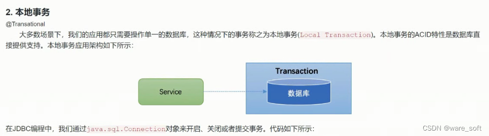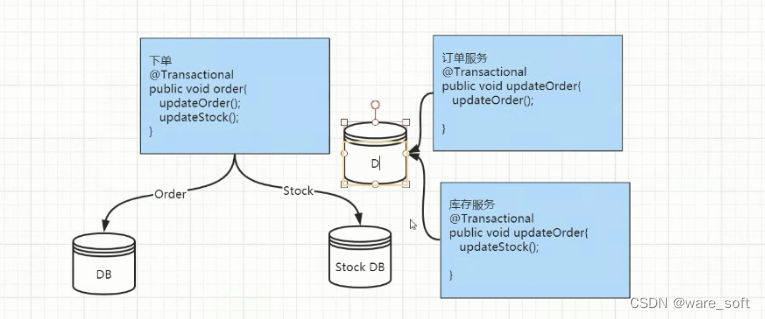 一个服务同时操作不同数据库,或者不同服务操作同一个数据库,需要解决分布式事务问题。数据库链接Session不同。