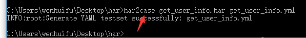 4. 导出的用例为har格式。需要应用httprunner里的工具转成yml格式。语法如下。