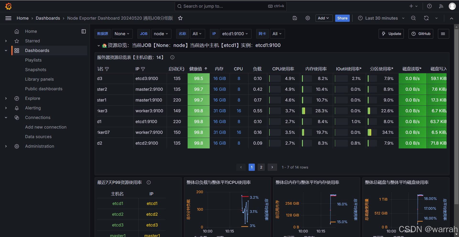 Node Exporter Dashboard 20240520 通用JOB分组版,点击download json
