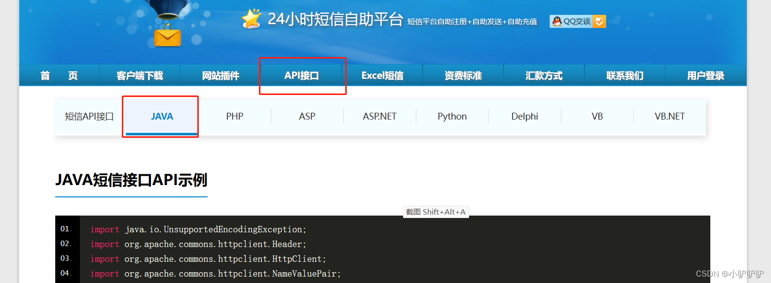 代码只修改new NameValuePair里的四个值 用户名,密钥,接收方手机号,信息内容