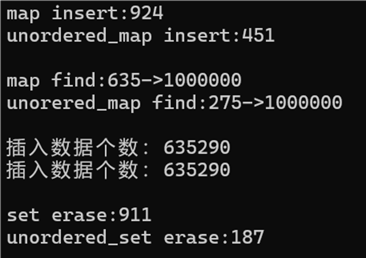 cout << "unordered_set erase:" << end6 - begin6 << endl << endl;