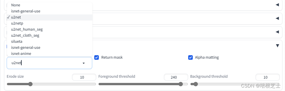 本文介绍了如何使用Rembg工具去除图像背景,包括安装背景删除扩展,选择不同算法如u2net,调整参数如前景和背景阈值、抠图腐蚀尺寸等以优化分离效果。此外,还提到了模型介绍,如u2net系列,以及如何在WebUI中进行背景重绘。