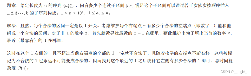 vector<int> p[maxn], st;//p[i]表示i这个数字左边最近的合法的1的位置(即这个1和数字i之间有2,3,...,i-1)