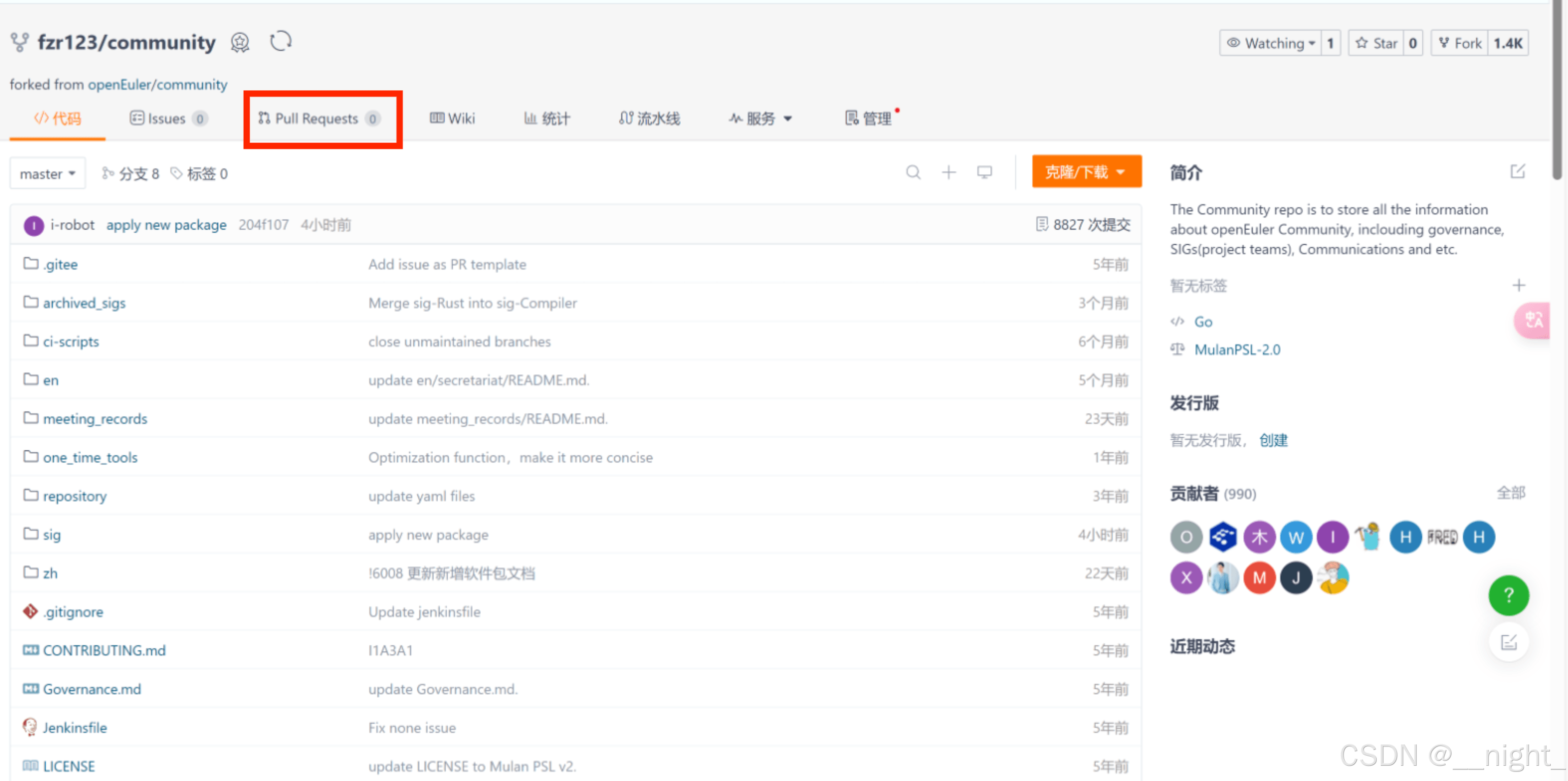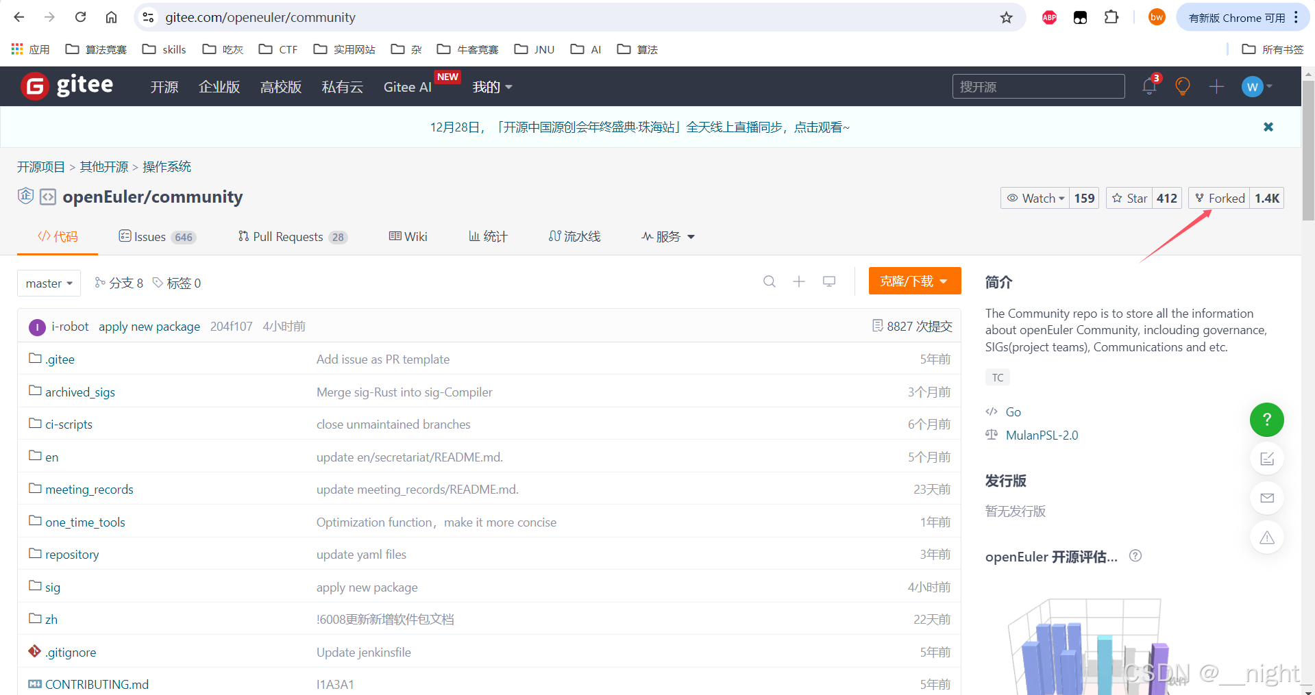 点击进入gitee的community仓库,将其fork到自己的仓库。