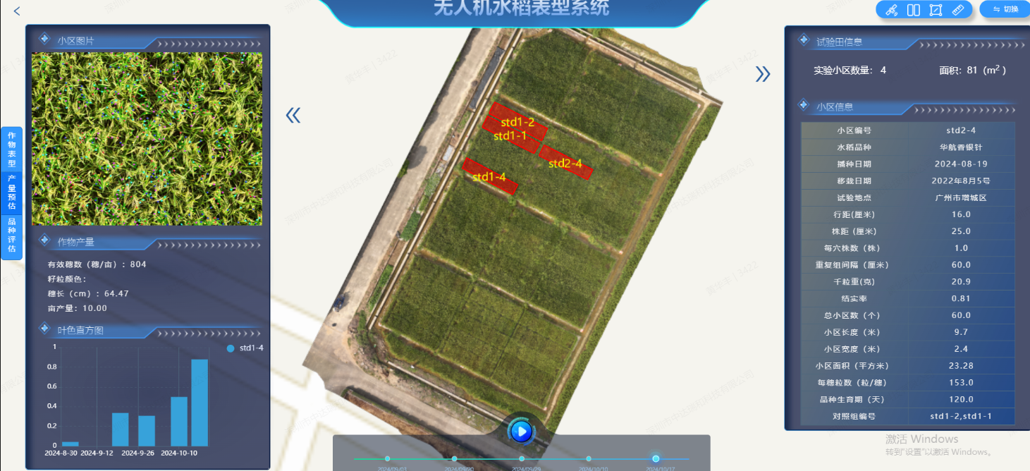 下图为中达瑞和光谱云平台作物产量预估的显示界面,目前已经在作物长势和产量预估广泛应用。