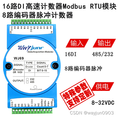 8路编码器脉冲计数器或16路DI高速计数器,Modbus RTU模块 WJ69
