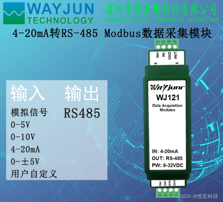 4-20mA转RS-485,Modbus数据采集模块 WJ121