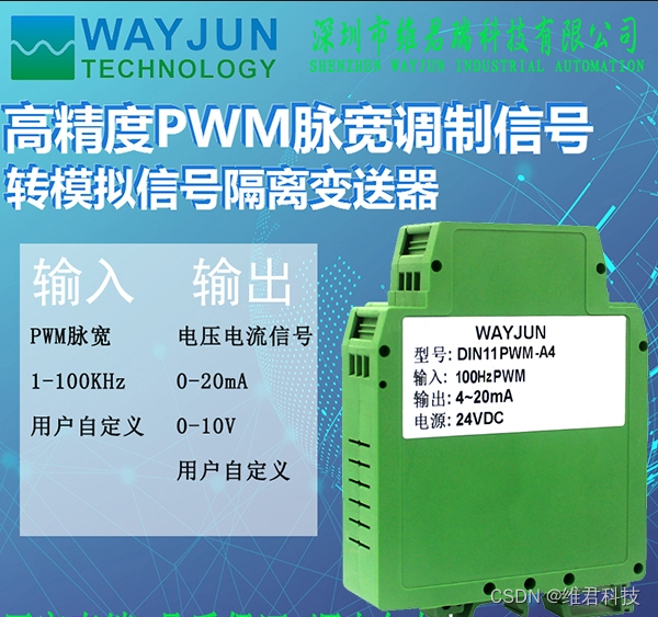 本文介绍了一种高精度0.1级PWM脉宽调制信号转模拟信号的隔离变送器,具备8-32V宽供电、1Hz~100KHz输入频率、多种输出信号选项,适用于工业现场信号隔离、DA转换和PLC控制等多种场景。