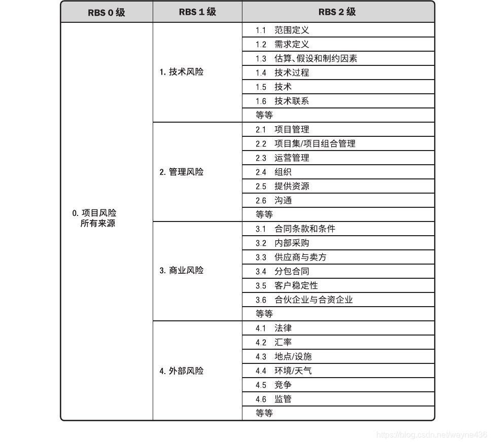 确定对单个项目风险进行分类的方式。通常借助风险分解结构 (RBS)来构建风险类别