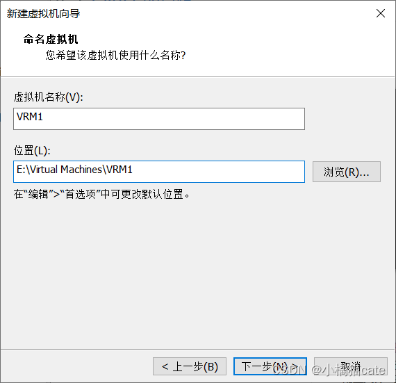 6、设置虚拟机名称和位置,