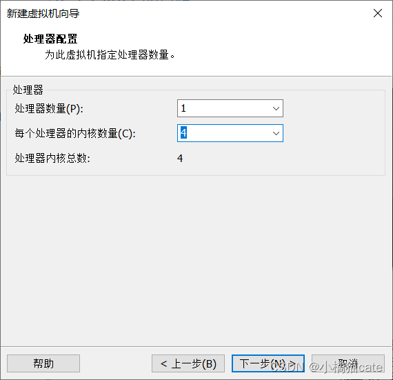 7、选择处理器内核数量,下一步