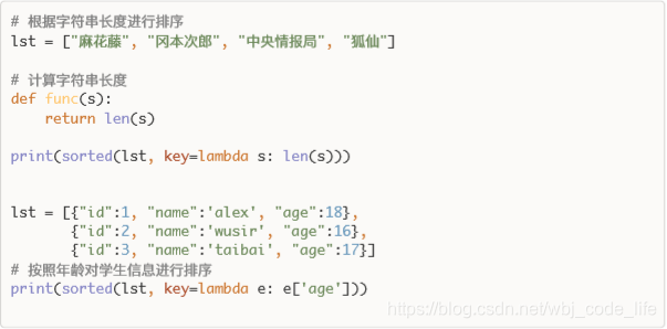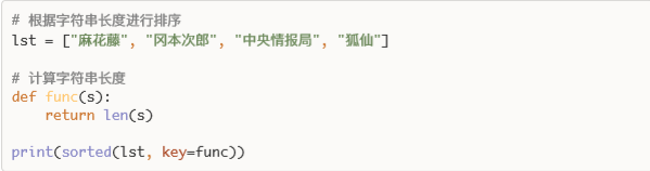 key: 排序规则(排序函数), 在sorted内部会将可迭代对象中的每一个元素传递给这个函数的参数. 根据函数运算的结果进行排序