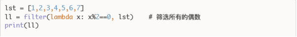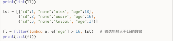 function: 用来筛选的函数. 在filter中会自动的把iterable中的元素传递给function. 然后根据function返回的True或者False来判断是否保留此项数据