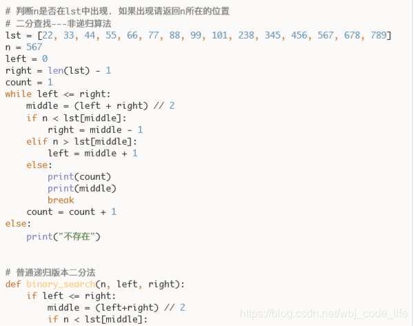 二分查找. 每次能够排除掉一半的数据. 查找的效率非常⾼高. 但是局限性比较大. 必须是有序序列才可以使用二分查找
