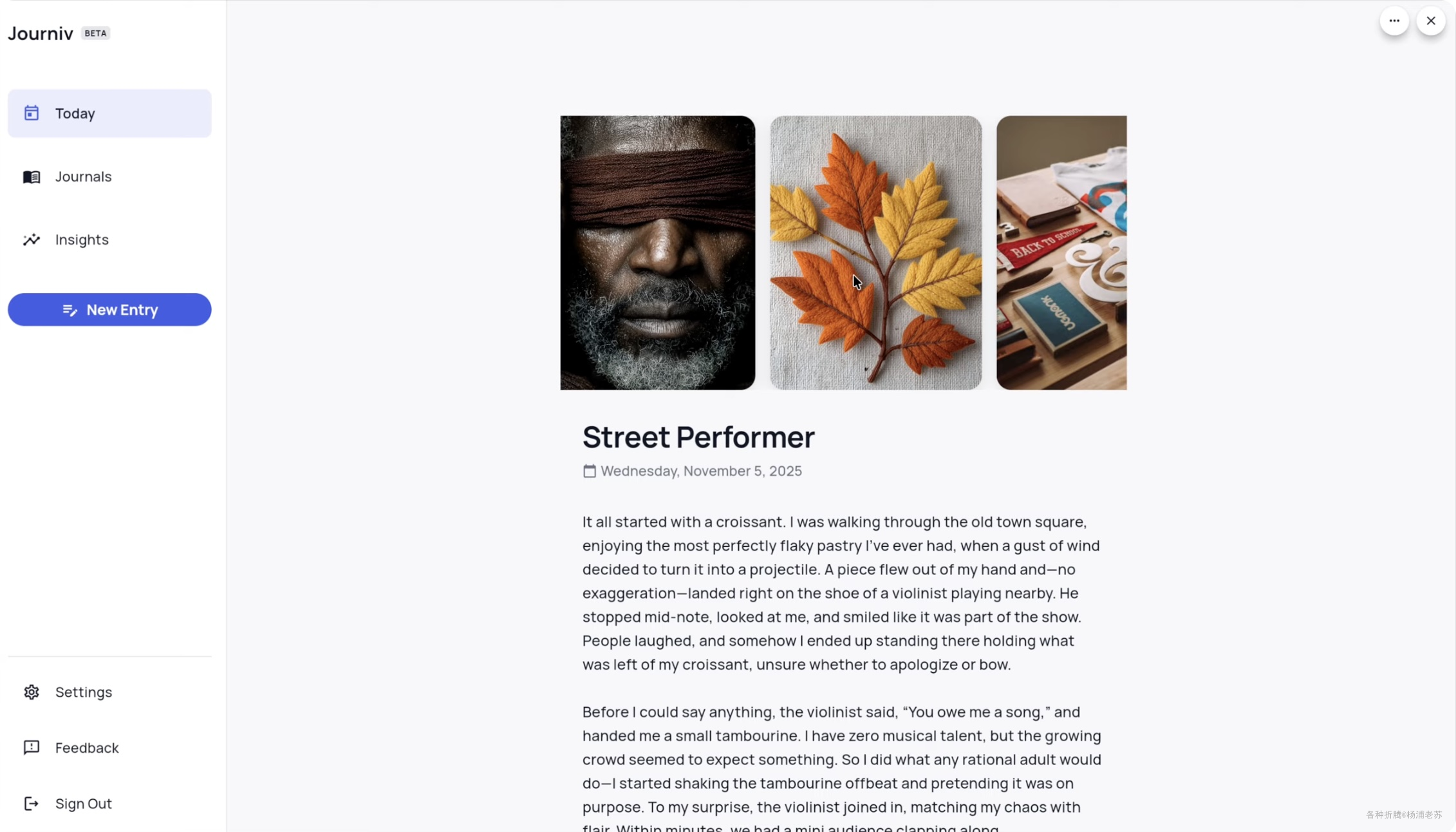 Journiv来追踪情绪变化,记录心理状态。 - 创意写作与灵感捕捉:作家和艺术家可以使用基于提示的日记功能,捕捉灵感并记录创意过程。