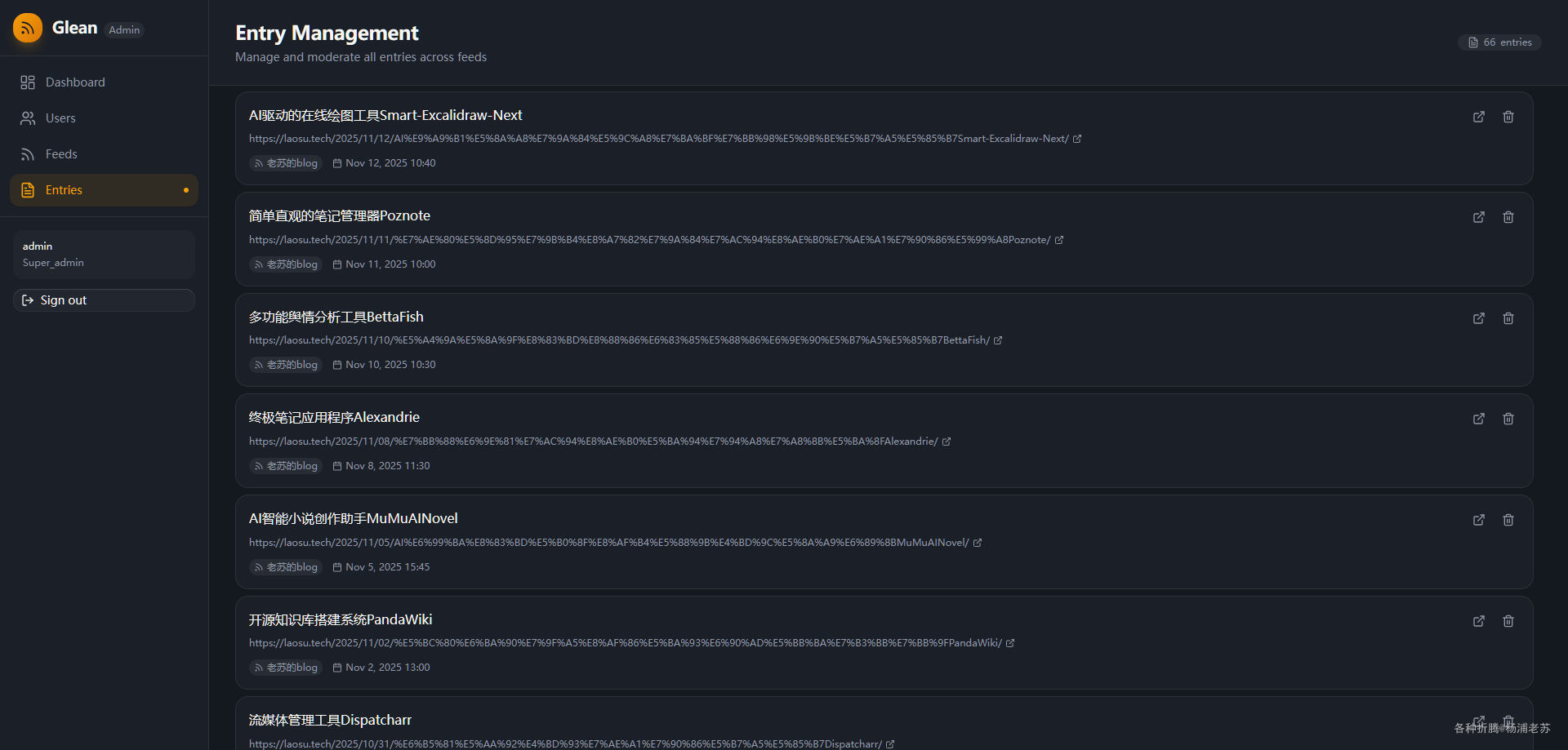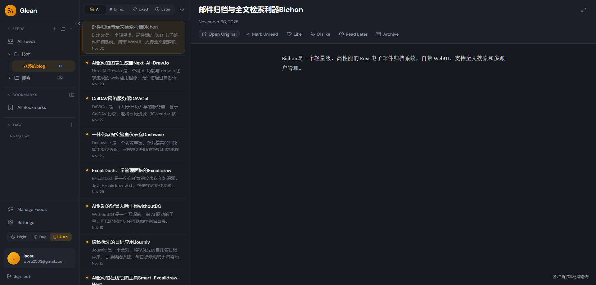 RSS阅读器和个人知识管理工具,旨在帮助重度信息消费者通过智能RSS聚合与管理功能,解决信息过载问题,帮助用户高效地进行阅读、筛选和知识沉淀。