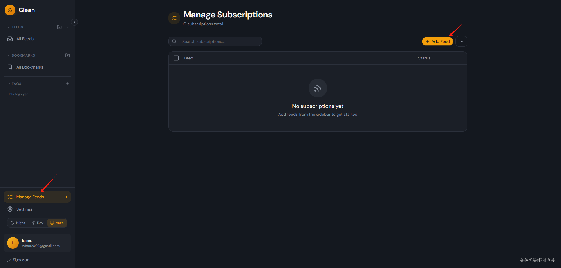 Manage Feeds --> Add Feed,添加 RSS