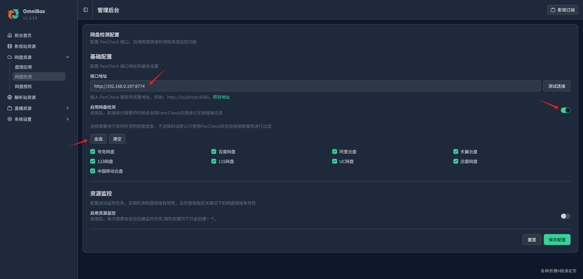启用 网盘检测后,前端进行搜索的时候会启用 PancCheck 应用进行无效链接过滤