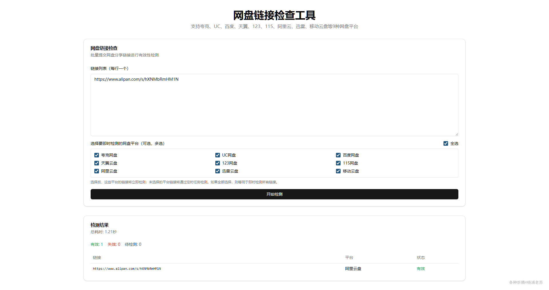 9种主流网盘平台的链接 - ⚡ 高性能检测:支持并发检测,可配置检测频率和超时时间