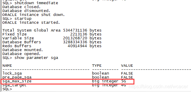 (如图,修改完成后不会马上生效,需要重启数据库读取spfile文件)