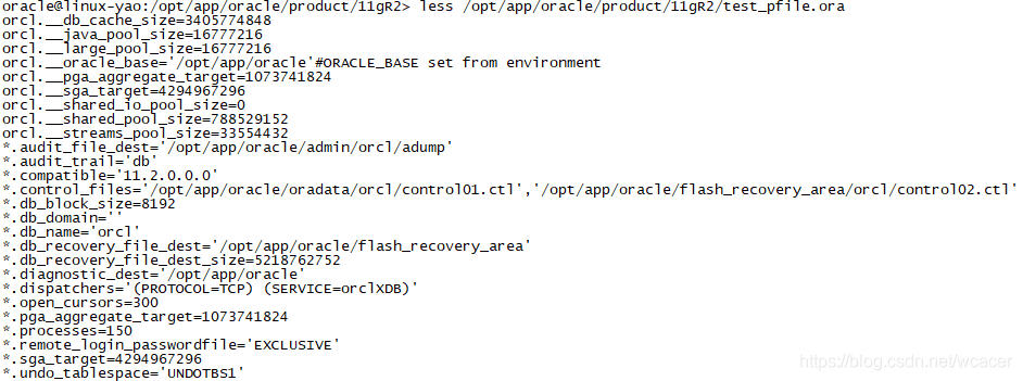 可以通过查看pfile文件来查看当前spfile中的配置,也可以通过vi编辑器修改pfile中的参数: