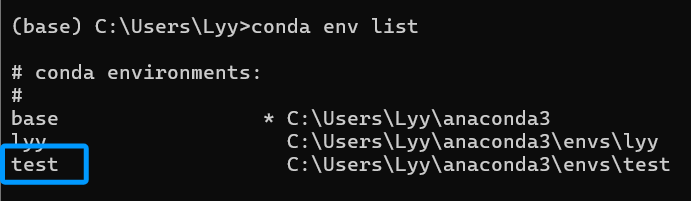 创建完后list一下看看有没有成功,下图显示已经有test虚拟环境了!