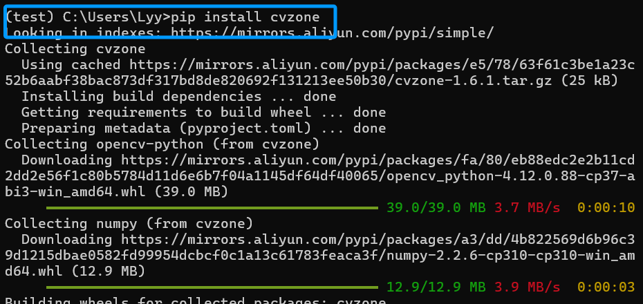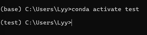 我们激活它,注意前面的括号发生了改变,变成了test环境了,这下我们离成功不远了!只需要再安装我们需要的包就行