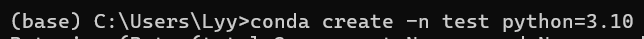 创建名为test的conda虚拟环境,指定py版本为3.10