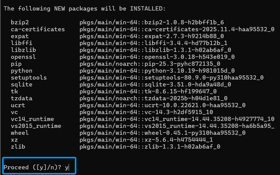 输入以下命令来创建一个新的虚拟环境,您可以指定 Python 版本(例如 3.8)和环境名称(例如 myenv):