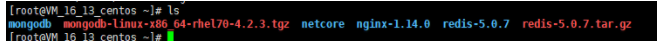 解压后在根目录上输入ls 列出所有目录会发现与下载redis之前多了一个redis-5.0.7.tar.gz文件和 redis-5.0.7的目录。