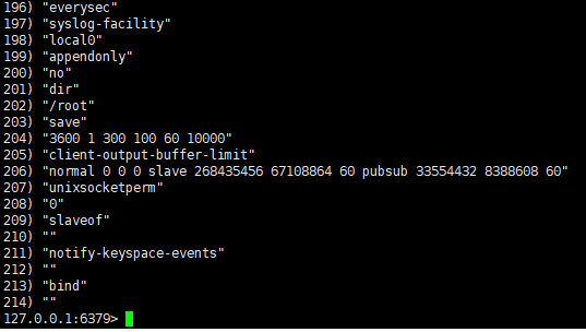 也可以通过redis-cli命令进入redis控制台后通过CONFIG GET * 的方式读取所有配置项。 如下: