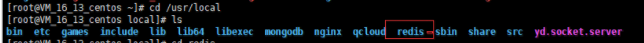 cd 到/usr/local目录下输入ls命令可以查询到当前目录已经多了一个redis子目录,同时/root目录下已经没有redis-5.0.7文件夹